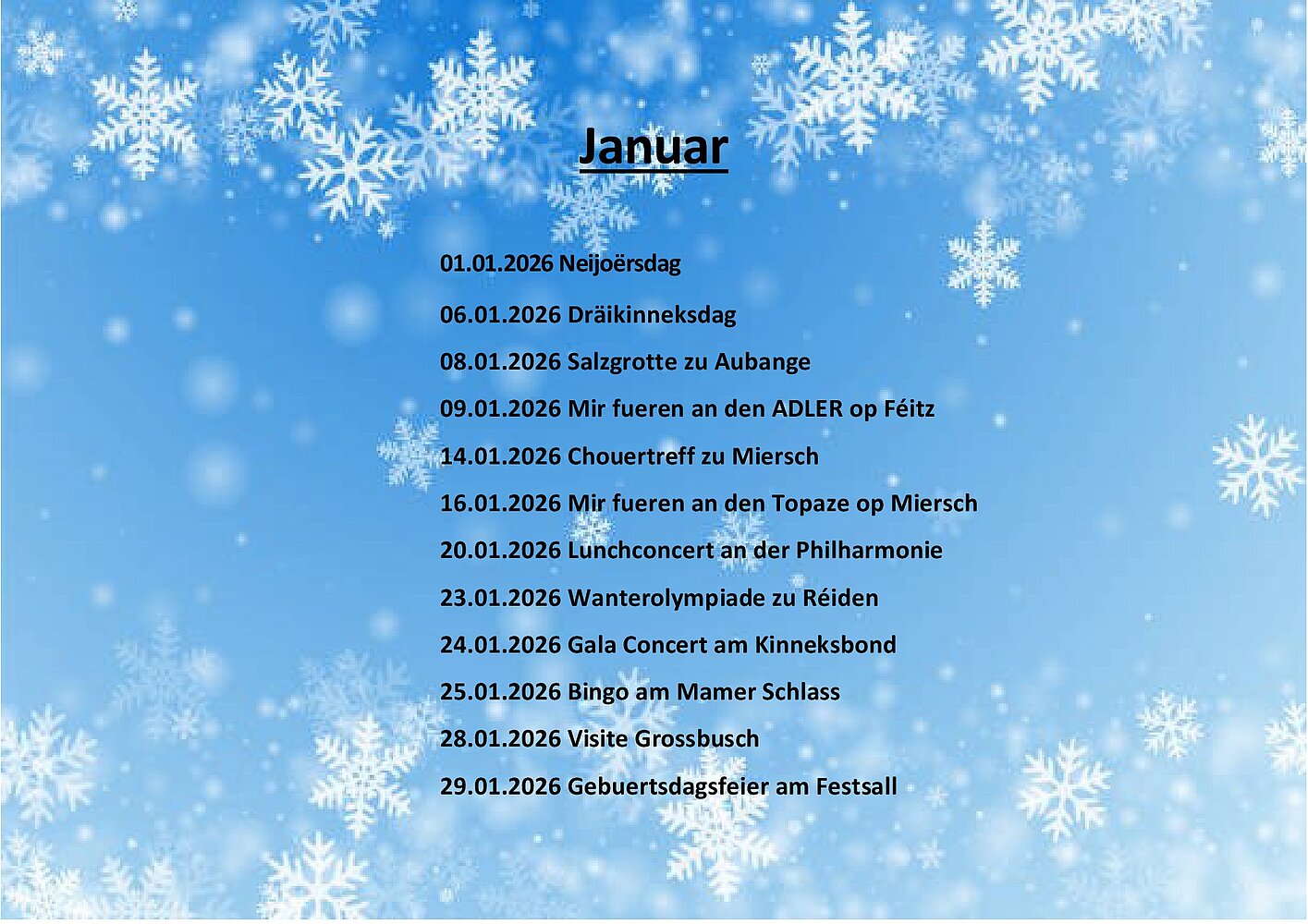 Aktivitéitenplang "Club R" vum Mount Januar 2026