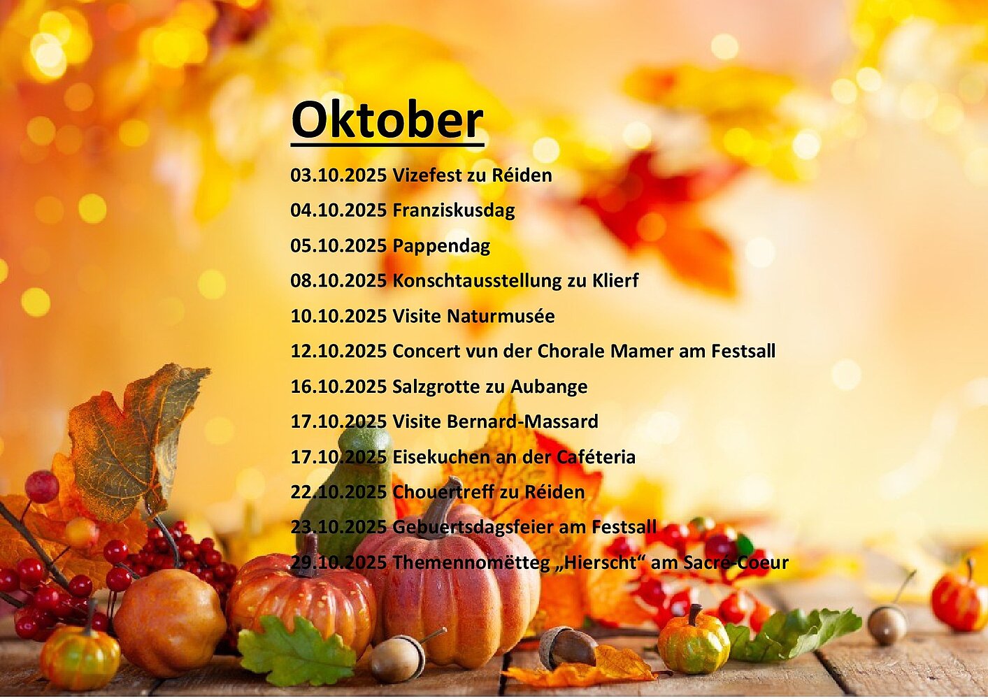 Aktivitéitenplang Club "R" vum Mount Oktober 2025