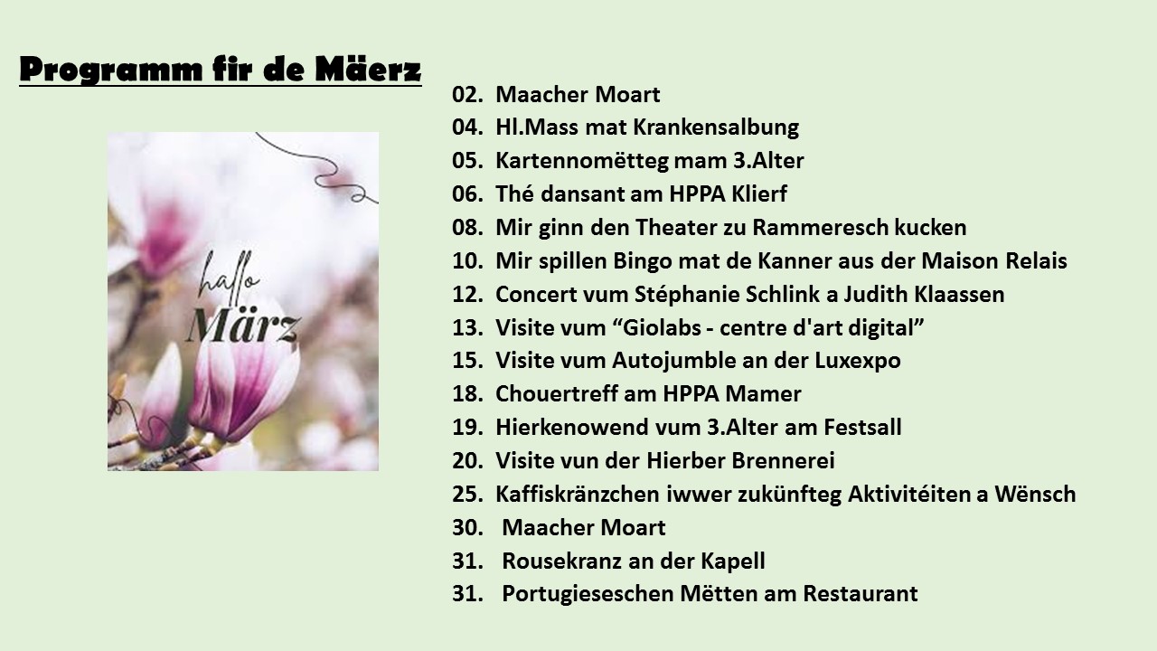 Hei fannt dir den Aktivitéiteplang fir de Mount Mäerz: