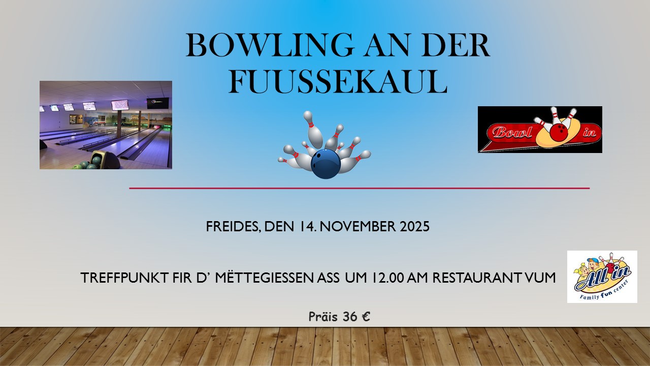 Den 14. November ginn mir op d' Fussekaul Bowling spillen