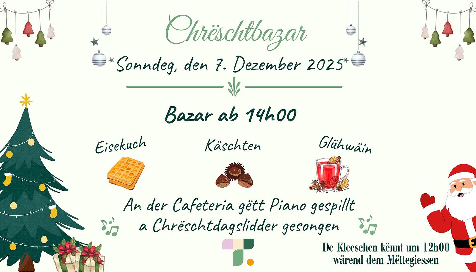An der Cafétéria gëtt ab 15.00 Piano gespillt an Chrëschtlidder gesongen