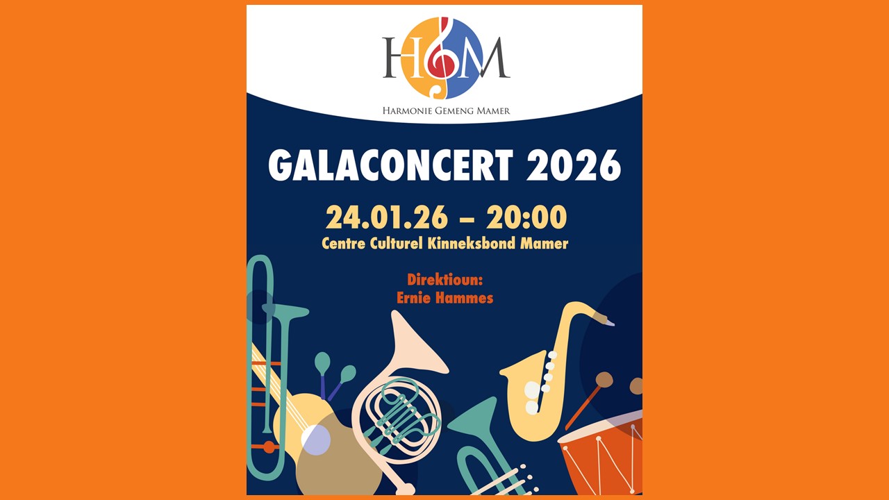 Galaconcert vun der Harmonie Gemeng Mamer Samschdeg, den 24. Januar um 20:00 Auer am Centre Culturel Kinneksbond Mamer