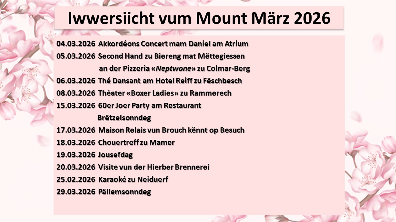 05.03.2026 Second Hand zu Biereng mat Mëttegiessen an der Pizzeria «Neptwone» zu Colmar-Berg