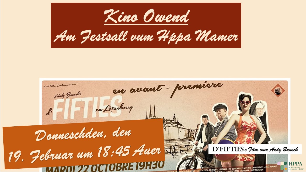 Kino Owend am Festsall vum Hppa Mamer, Donneschden, dem 19. Februar 2026 um 18:45