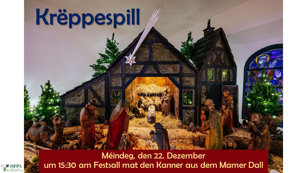 Krëppespill ass um 15:30 Auer am Festsall, gespillt vun den Kanner aus dem Mamer Dall