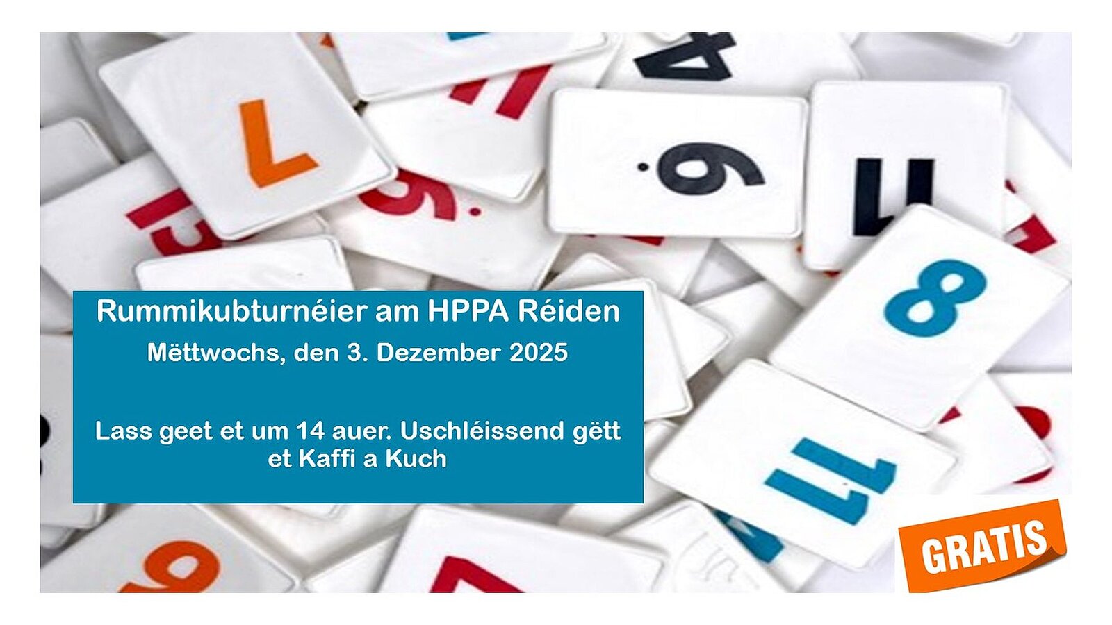 Lass geet et um 14 auer. Uschléissend gëtt et Kaffi a Kuch.